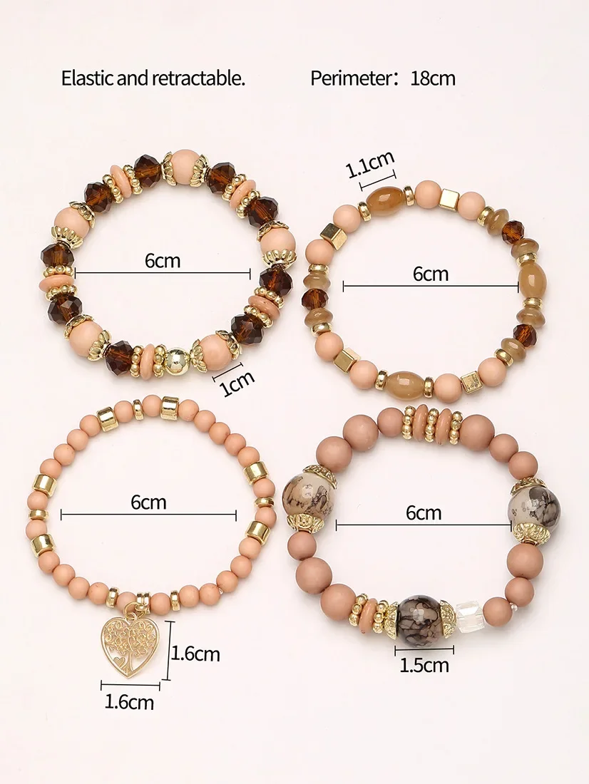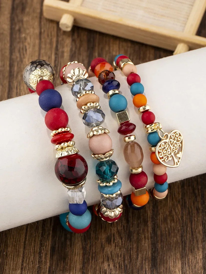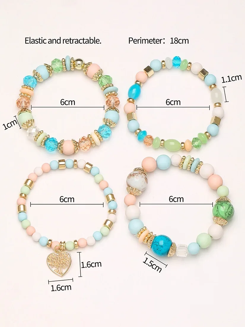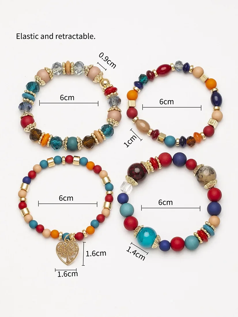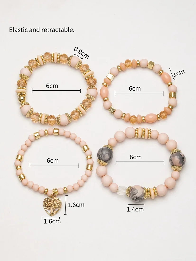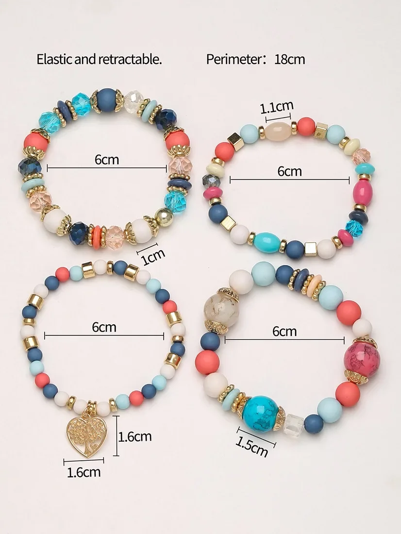 4Pcs Acrylic Beads Chain Tree Of Life Charm Elastic Bangle Female Bohemian Bracelets