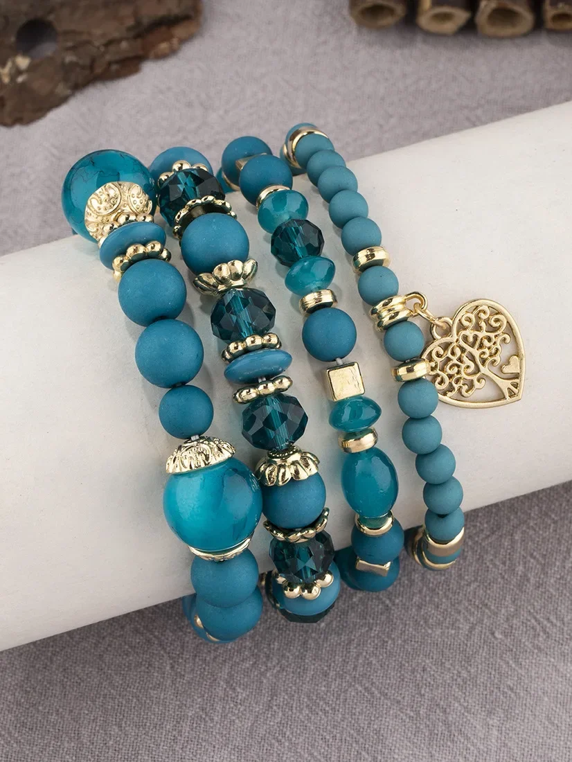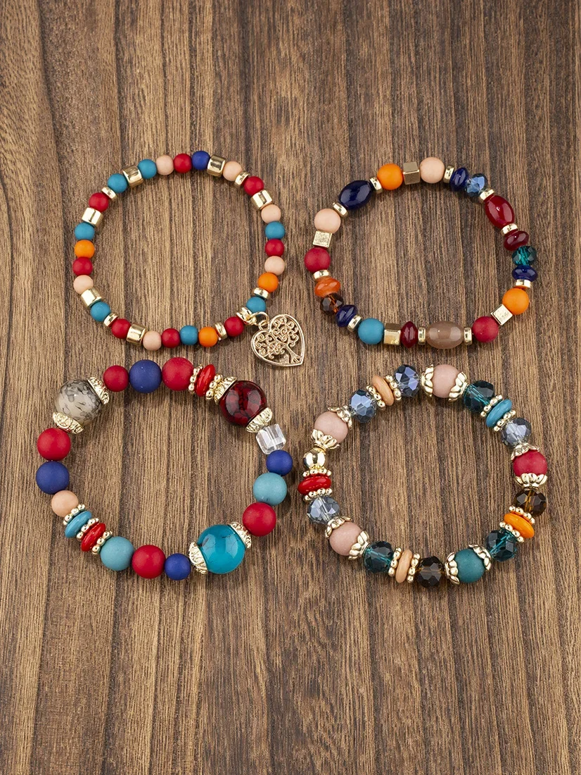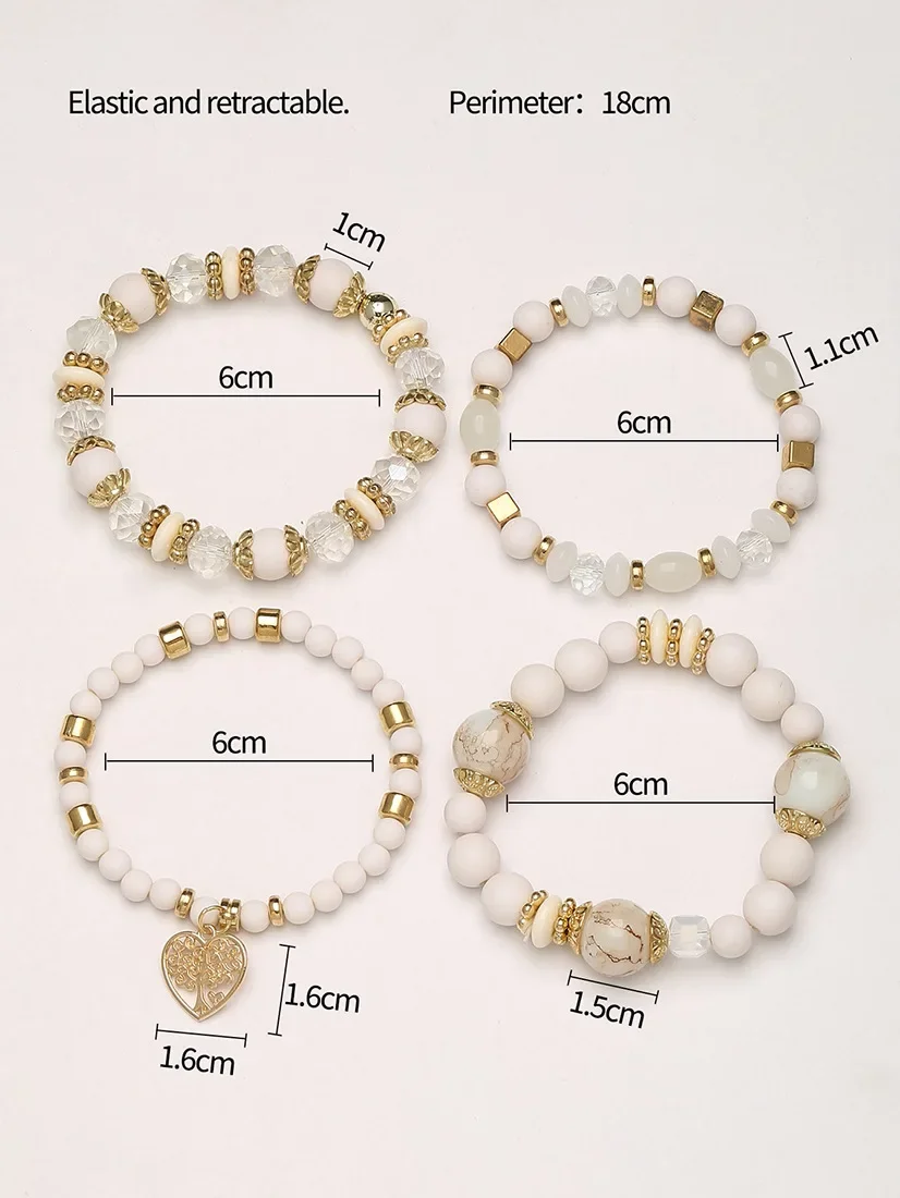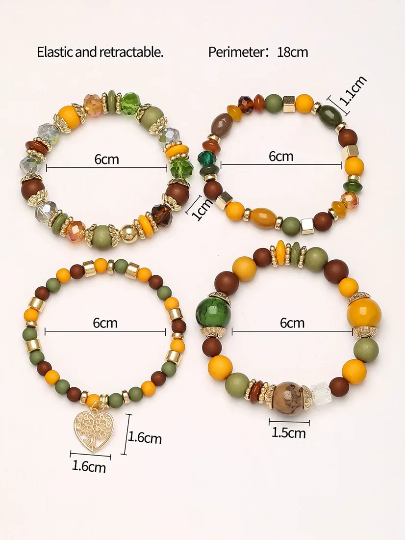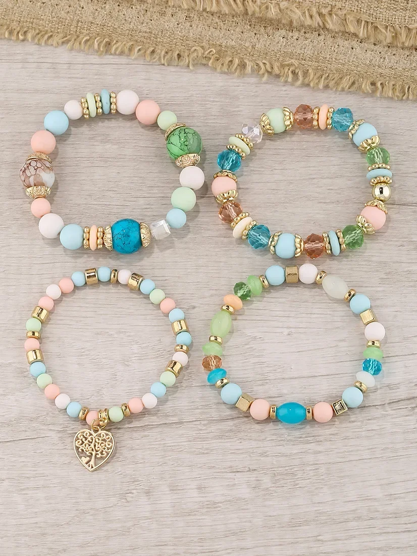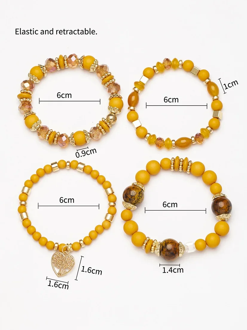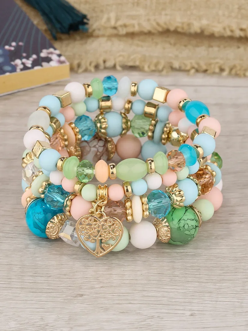 4Pcs Acrylic Beads Chain Tree Of Life Charm Elastic Bangle Female Bohemian Bracelets