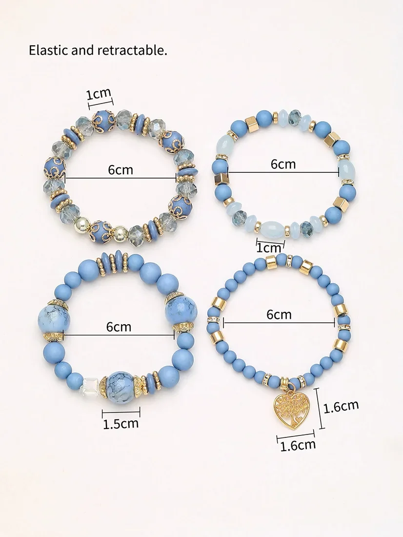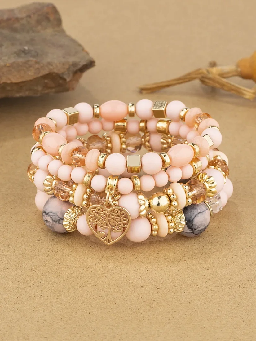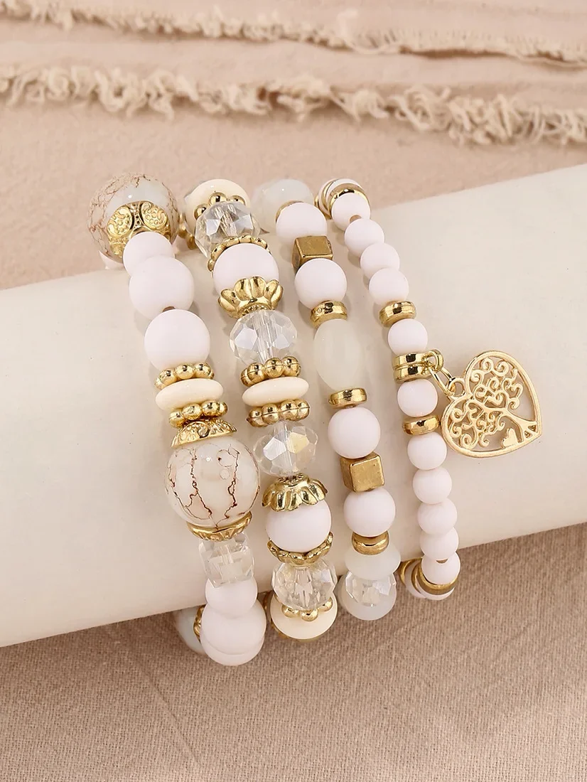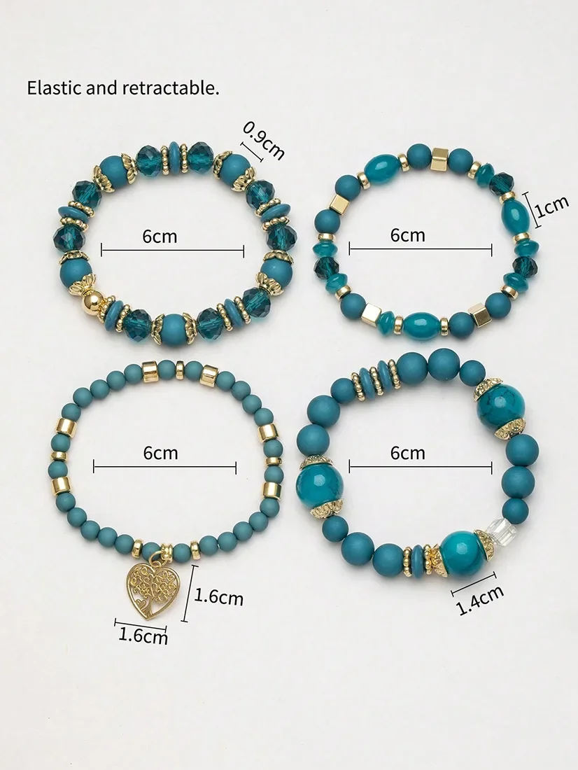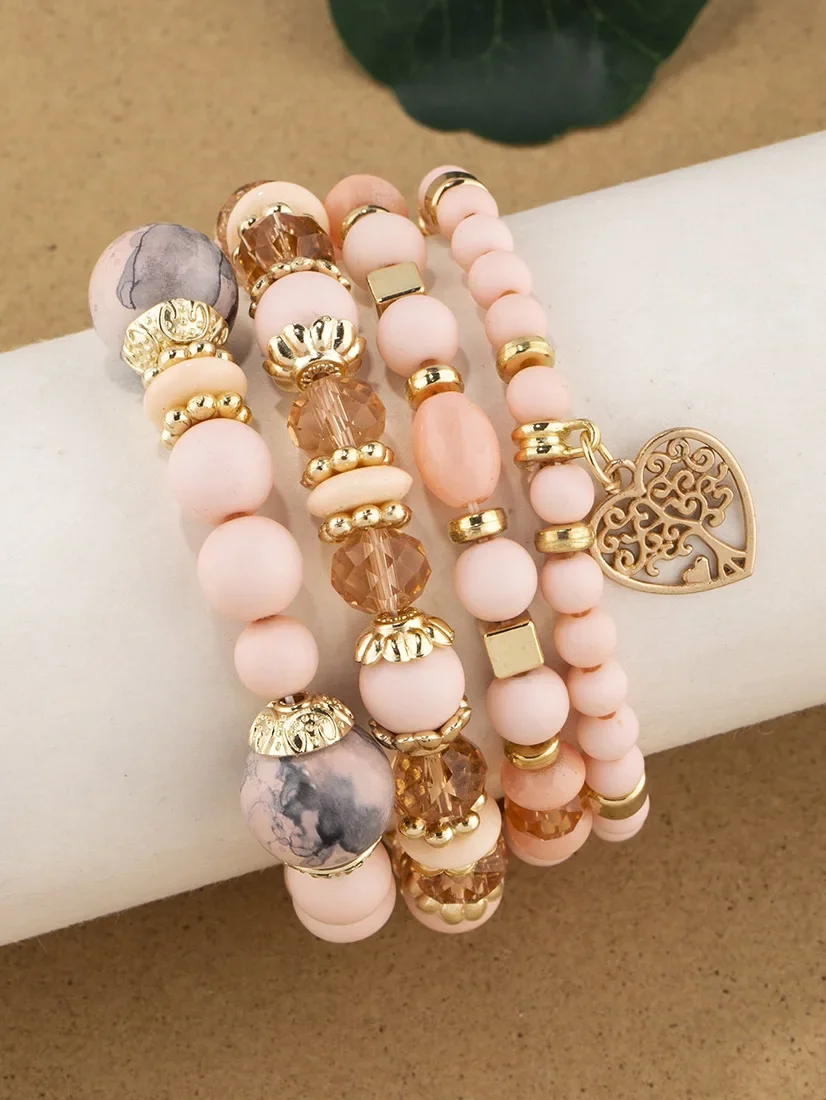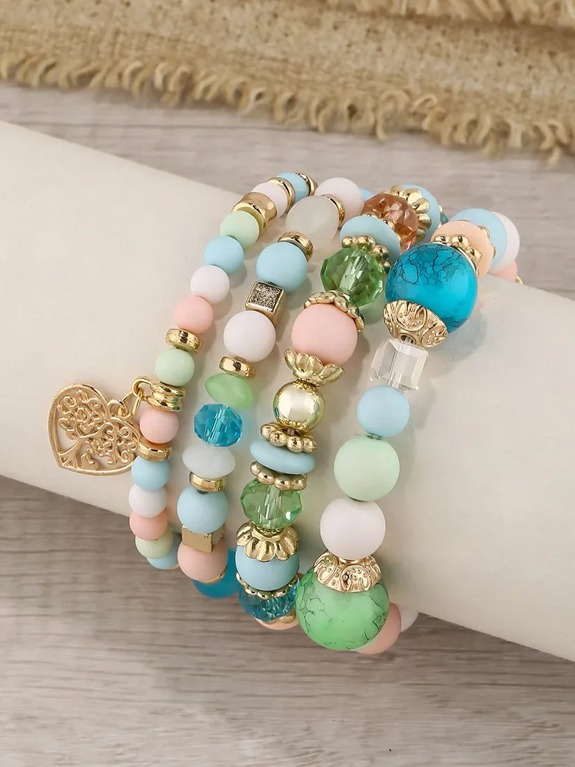 4Pcs Acrylic Beads Chain Tree Of Life Charm Elastic Bangle Female Bohemian Bracelets