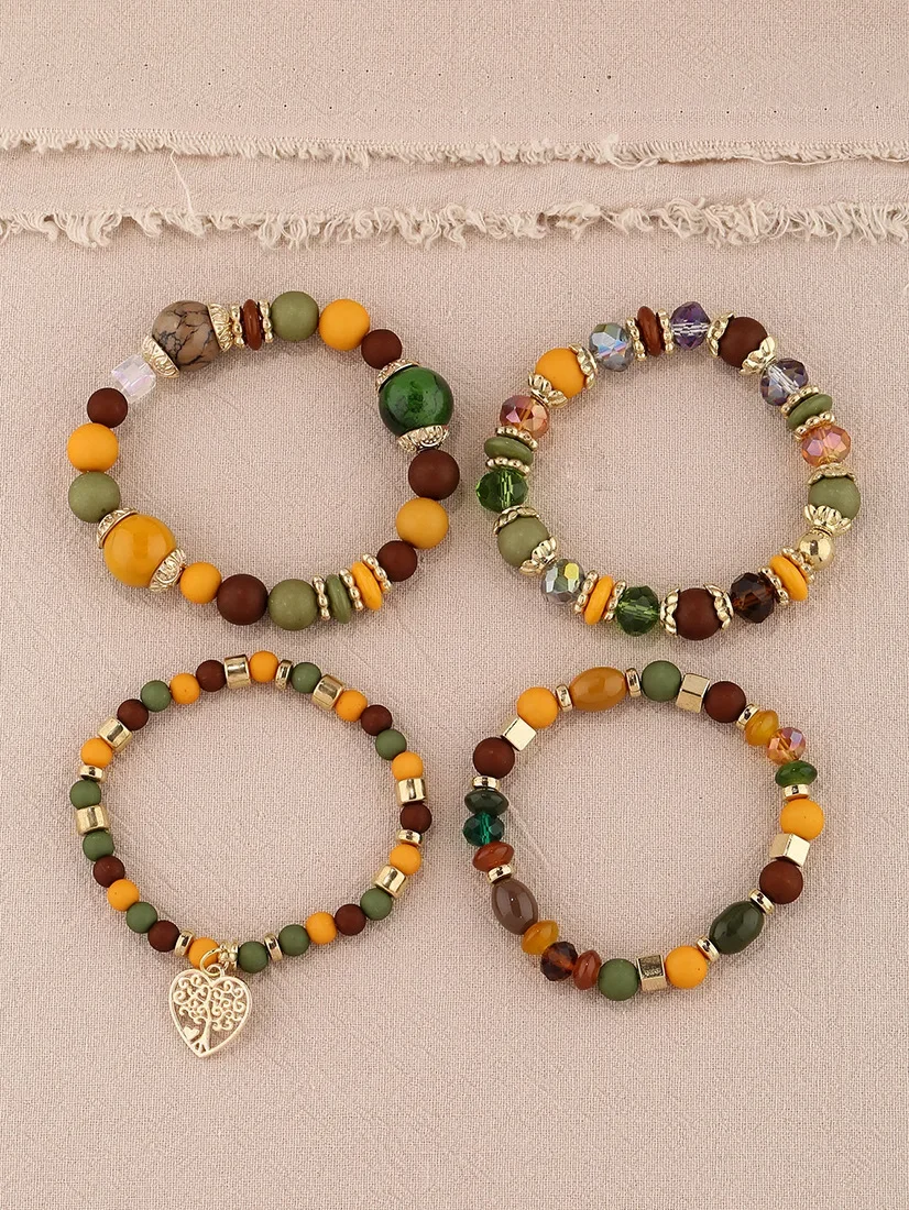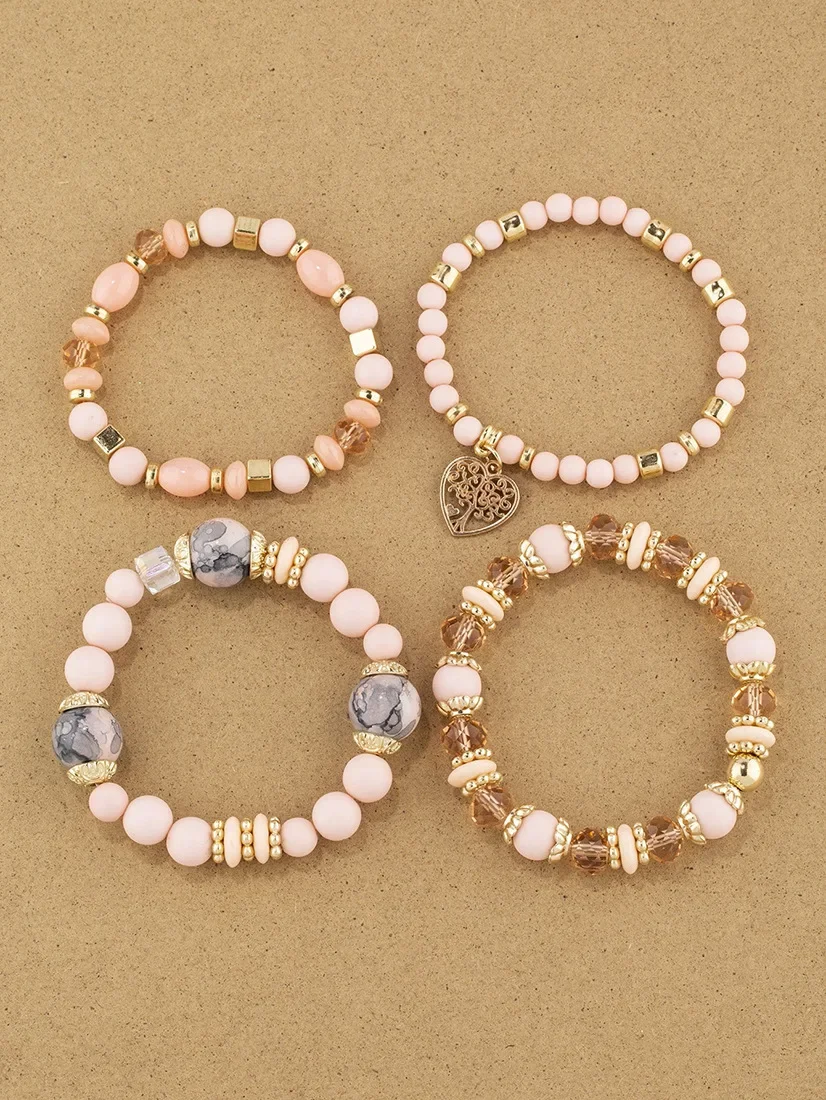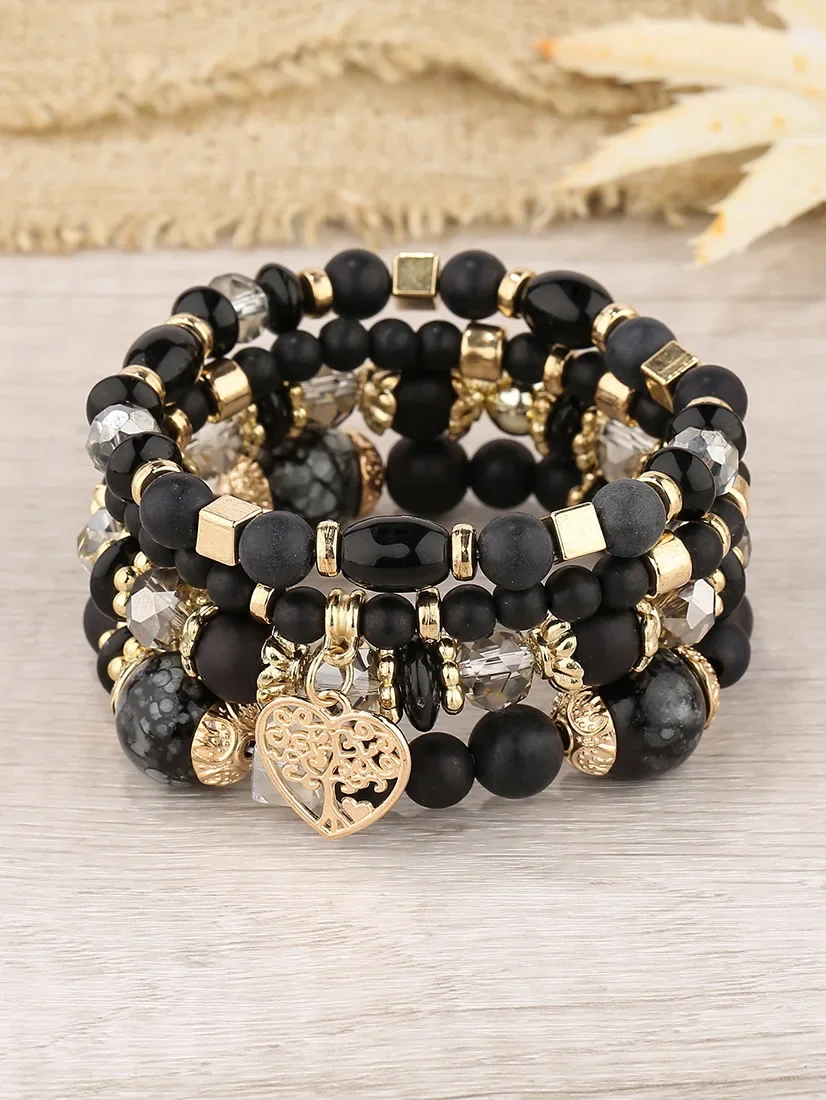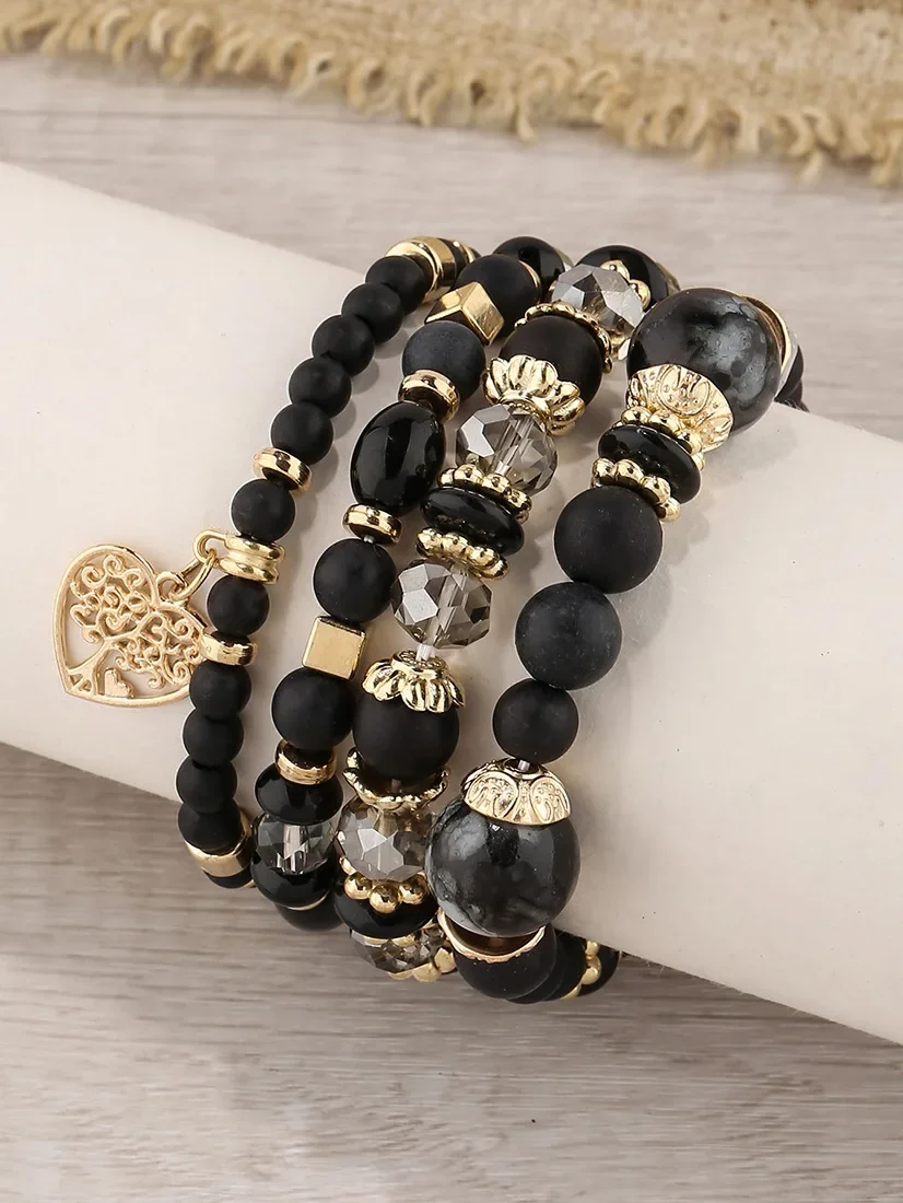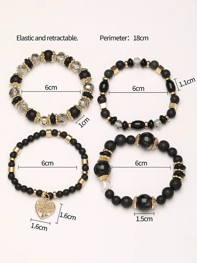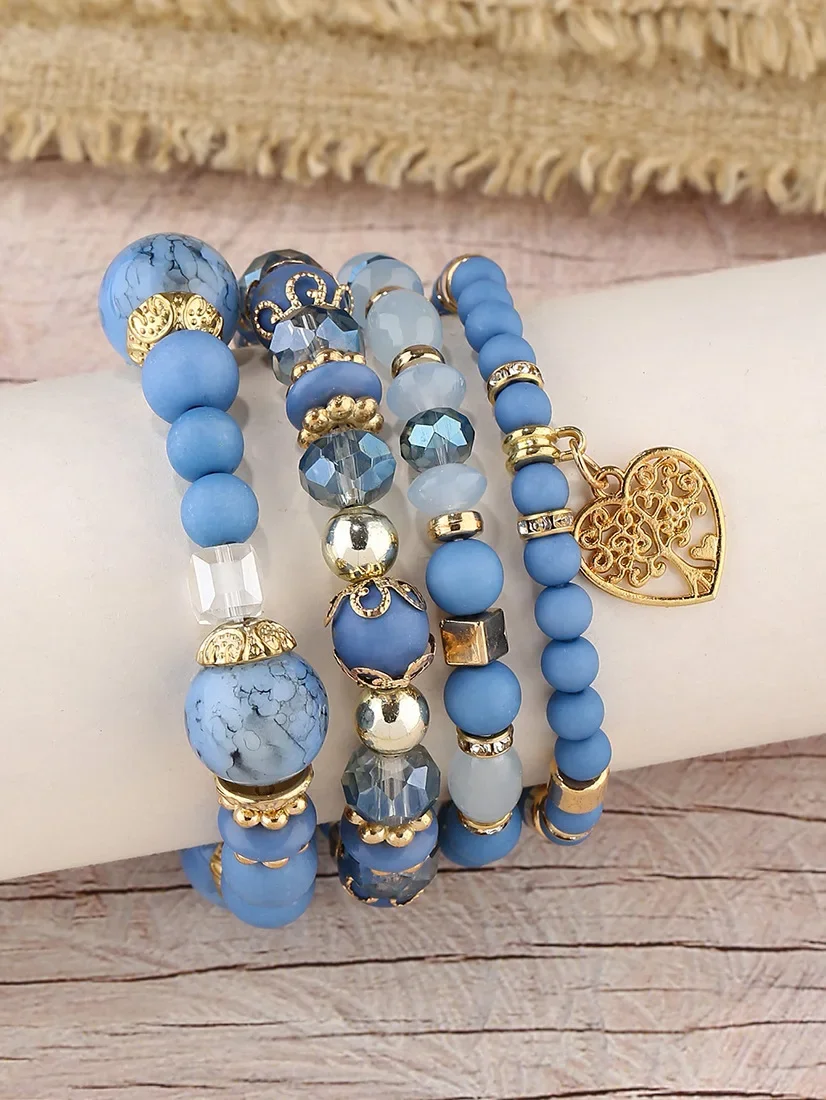 4Pcs Acrylic Beads Chain Tree Of Life Charm Elastic Bangle Female Bohemian Bracelets