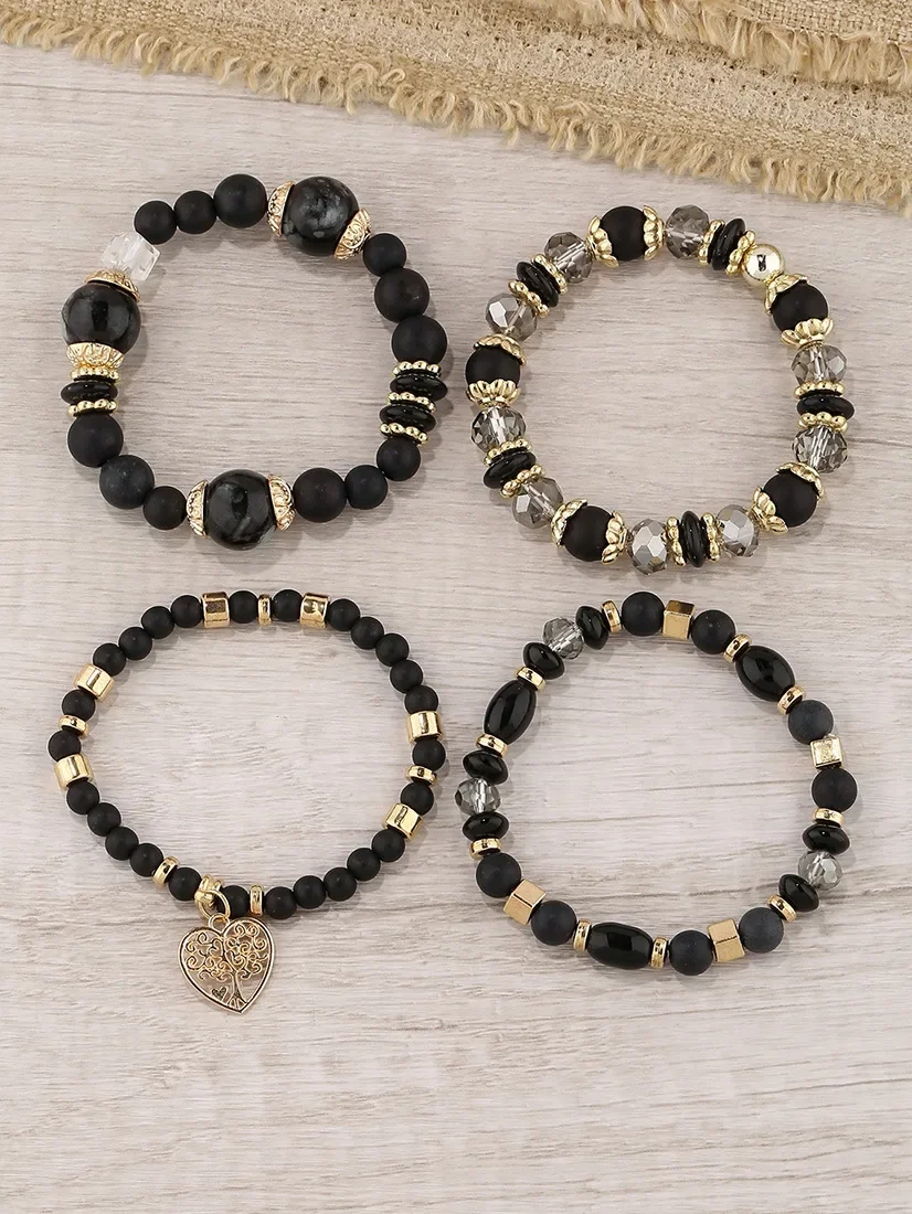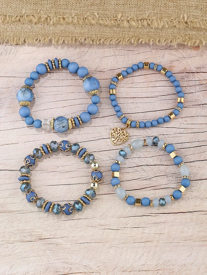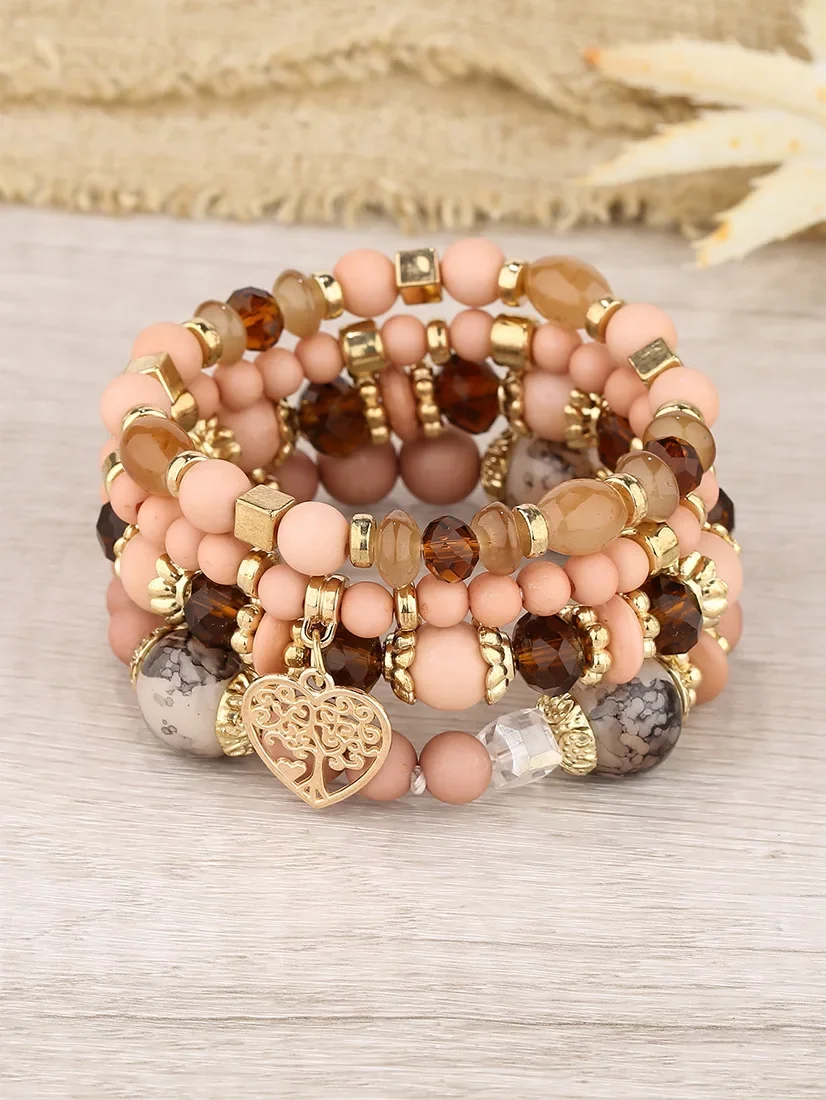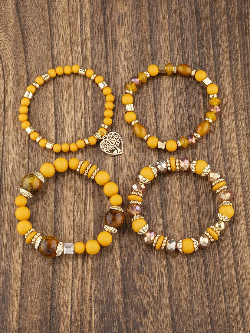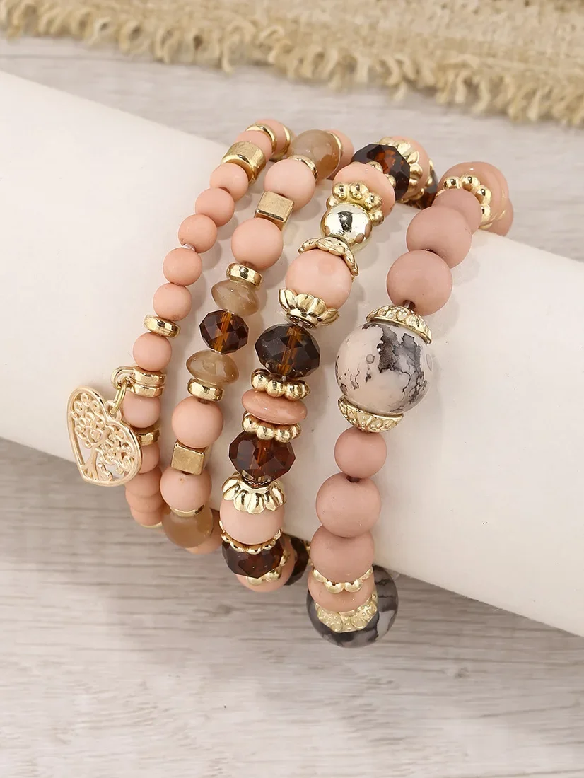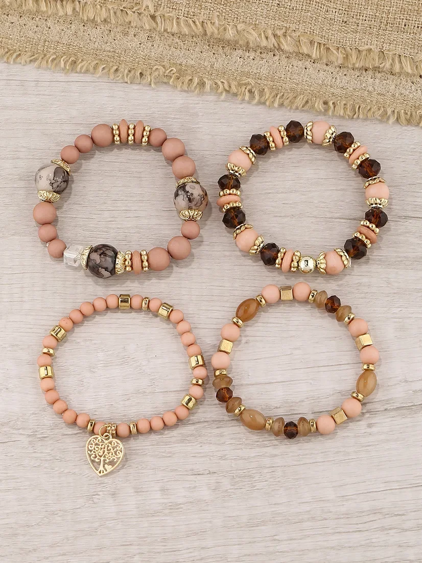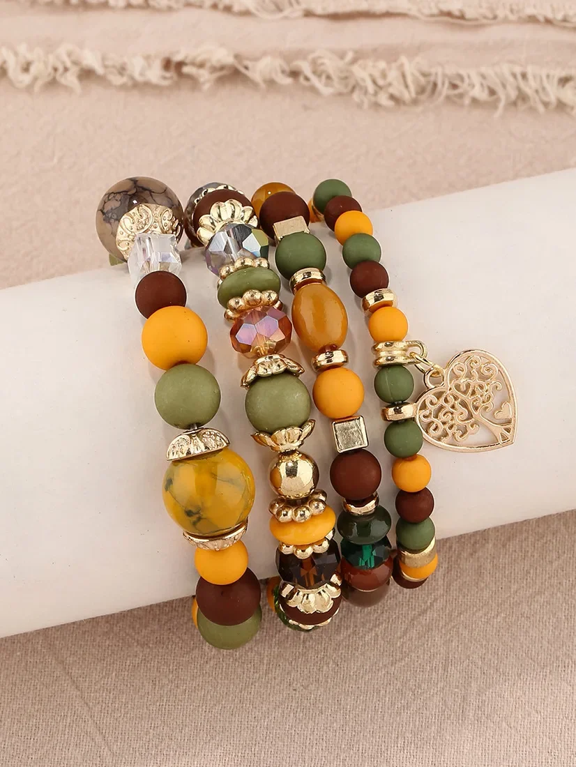 4Pcs Acrylic Beads Chain Tree Of Life Charm Elastic Bangle Female Bohemian Bracelets