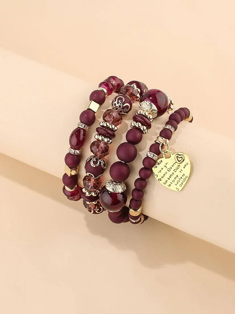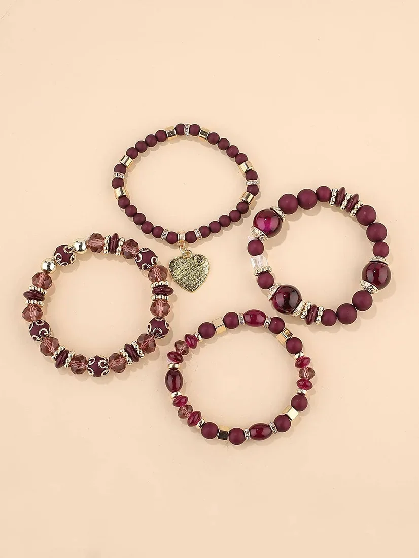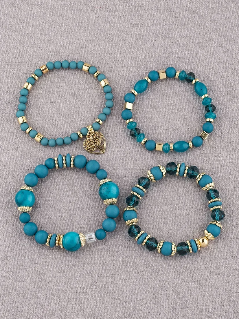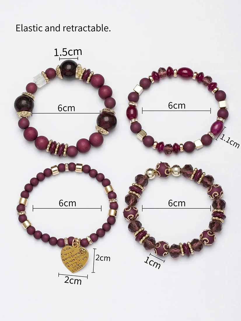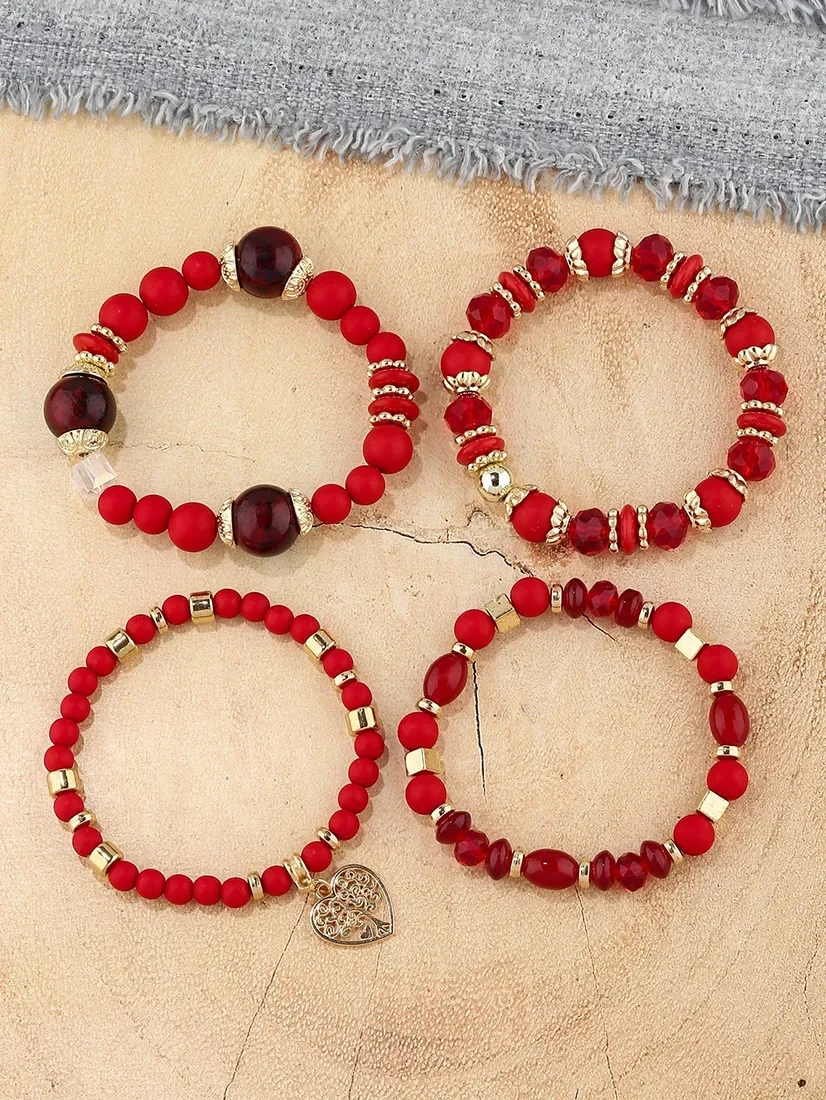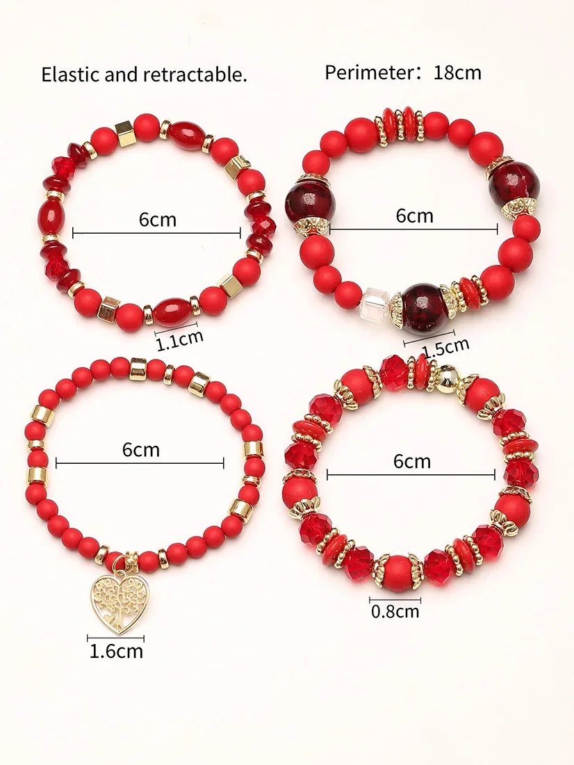 4Pcs Acrylic Beads Chain Tree Of Life Charm Elastic Bangle Female Bohemian Bracelets